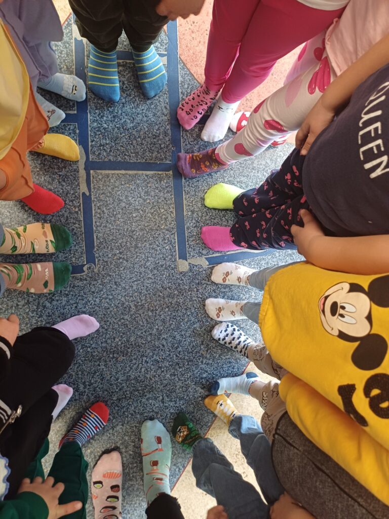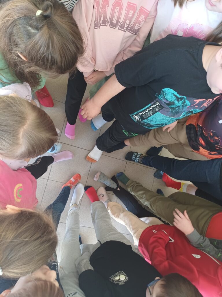 W naszej szkole odbył się Dzień Kolorowych Skarpetek. Na znak integracji i solidarności z osobami z Zespołem Downa założyliśmy dwie kolorowe skarpetki. Dzięki temu daliśmy osobom i ich bliskim czytelny znak naszego zainteresowania i aprobaty. Drobne gesty mają znaczenie, mogą przysłużyć się niwelowaniu barier i przezwyciężeniu stereotypów.