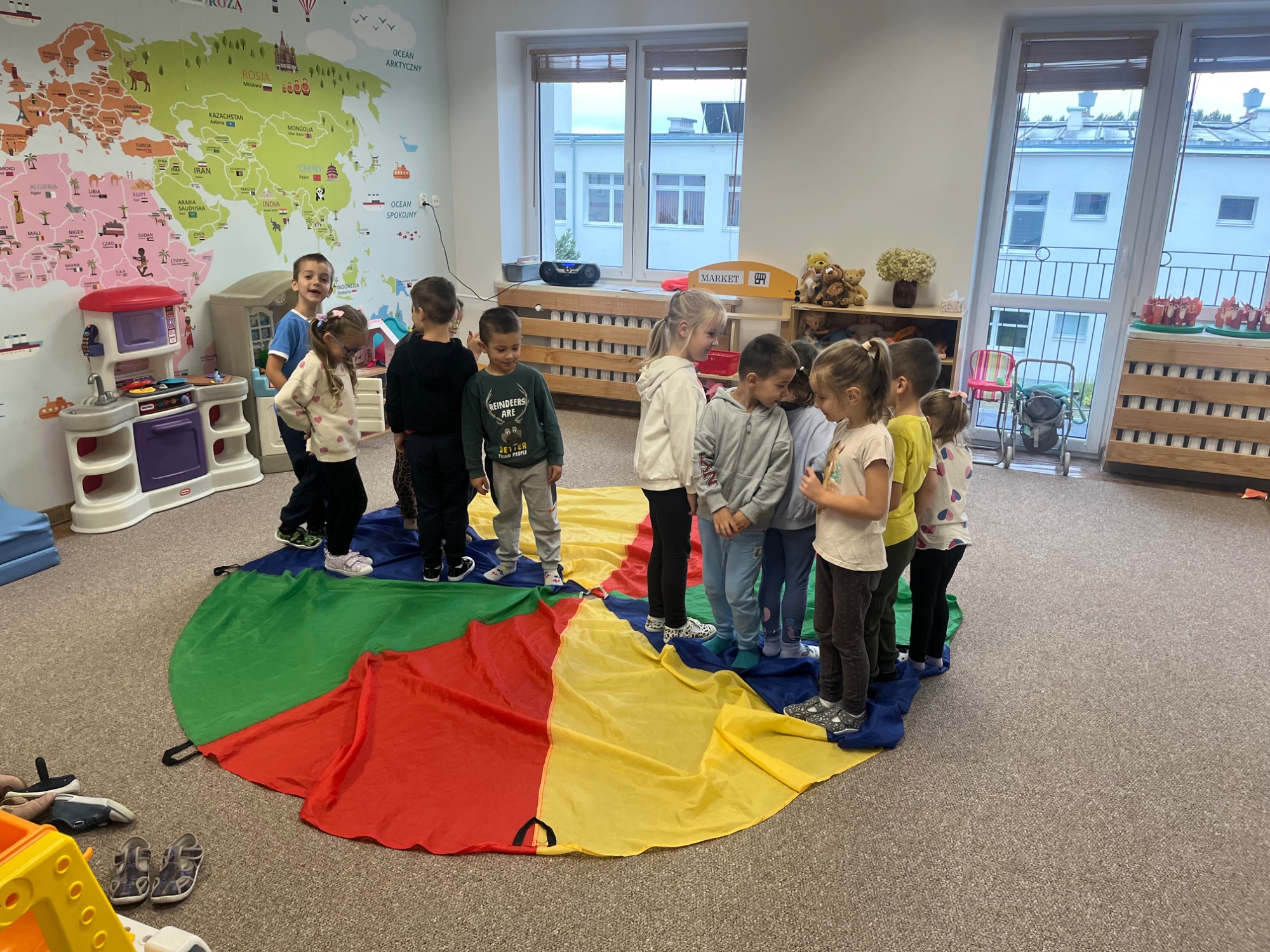 Od 29 września do 3 października przedszkolaki uczestniczyły w ogólnopolskiej inicjatywie „Tydzień Budowania Relacji”, zainicjowanej przez MEN. Działania wzmacniały więzi między dziećmi, rozwijały empatię i poczucie wspólnoty. Powstała „Pajęczyna przyjaźni” i plakaty, które były pełne kolorów i energii- nie tak jak grupa. Wspólnie graliśmy w gry planszowe i układaliśmy puzzle. Okazją do współpracy były także zabawy ruchowe i te z chustą animacyjną. Pudełko wdzięczności, które stanęło w klasie, pokazało jak wiele dobra dzieci dostrzegają wokół siebie każdego dnia. Zachęciłyśmy również rodziców do wspólnych rozmów w domu – aby dobre emocje mogły rosnąć dalej!