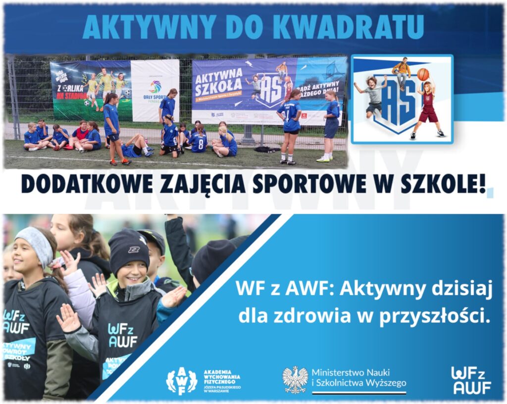 Nasza szkoła z dumą realizuje dwa ogólnopolskie programy sportowe, których celem jest promowanie aktywności fizycznej wśród dzieci i młodzieży oraz kształtowanie zdrowych nawyków na całe życie.🟩 Aktywna Szkoła: Aktywny do Kwadratu
