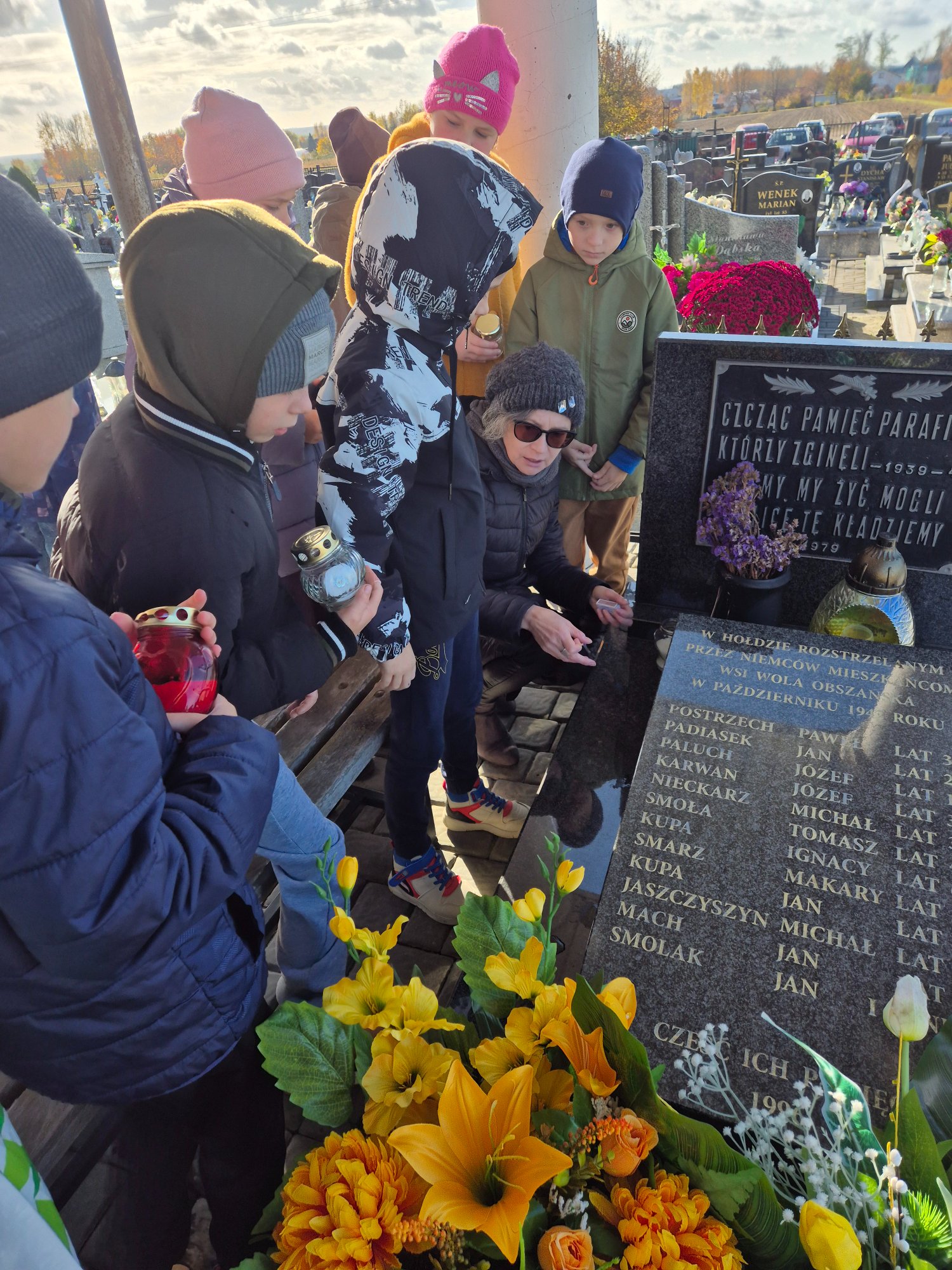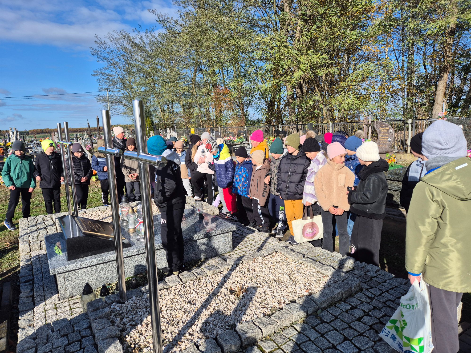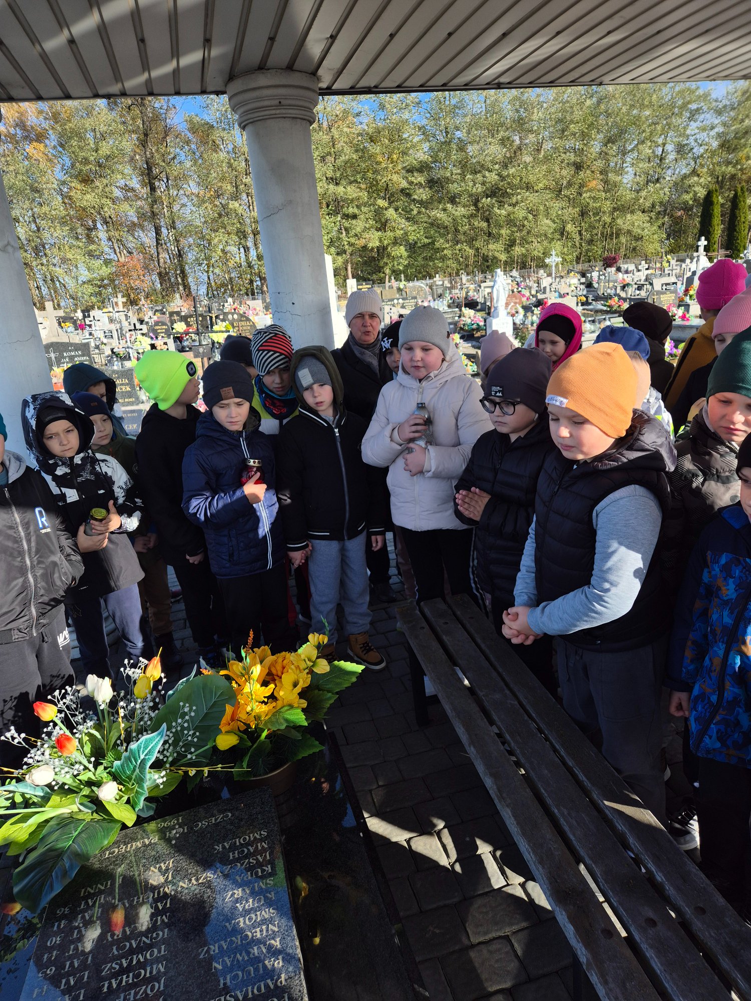 W środę uczniowie klas I-III odwiedzili cmentarz parafialny, aby wspólną modlitwą uczcić pamięć żołnierzy oraz mieszkańców z naszej gminy, którzy zginęli podczas II wojny światowej. Uczniowie zapalili na grobach przyniesione przez siebie znicze. Udekorowali także pomniki pięknymi kwiatami, które zostały przekazane przez państwa Edytę i Lecha Sytych. Serdecznie dziękujemy państwu Sytym za podarowane chryzantemy oraz zaangażowanie w działalność szkoły.