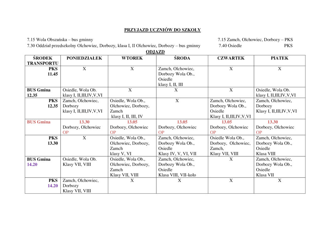 Kursy autobusów w roku szkolnym 2025/2026